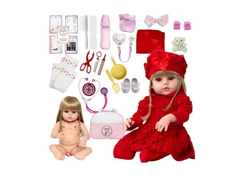 O menor preço encontrado no Brasil para Boneca Tipo Reborn Loira Princesa 46cm Com Kit 24 Itens Luxo - Cegonha atualmente é R$ 283,71.