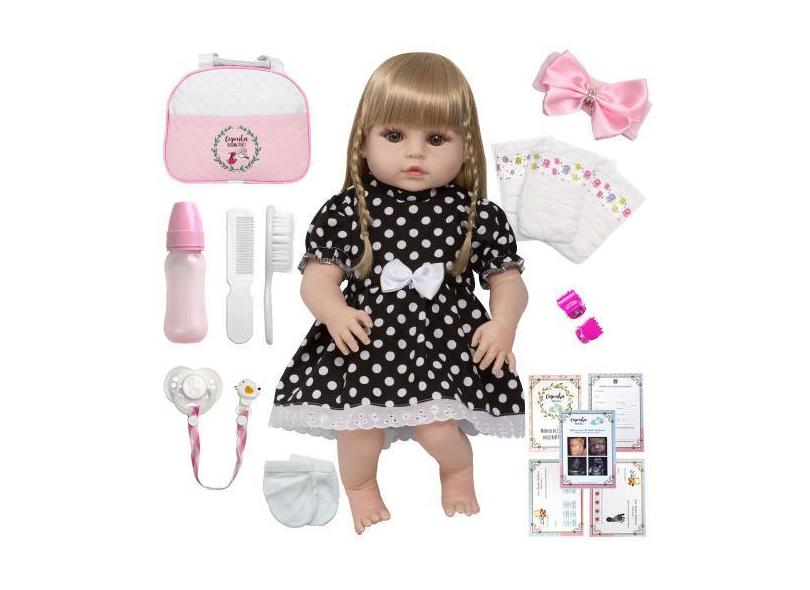 Boneca Tipo Reborn Menina 46cm Corpo Vinil Enxoval Completo - Cegonha