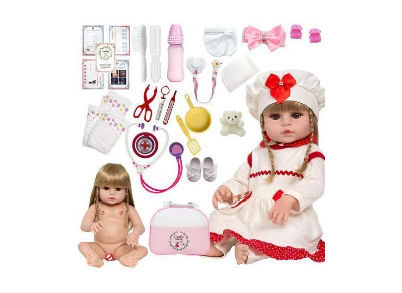 O menor preço encontrado no Brasil para Boneca Tipo Reborn Menina Loira Corpo De Vinil Siliconado - Cegonha Re atualmente é R$ 253,61.