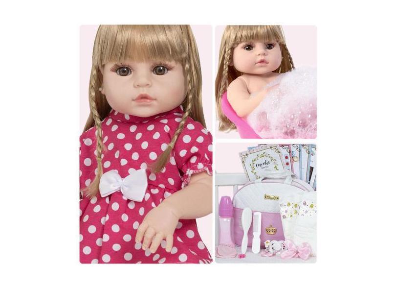 Boneca Tipo Reborn Menina Loira Pode Banho Enxoval Completo - Cegonha