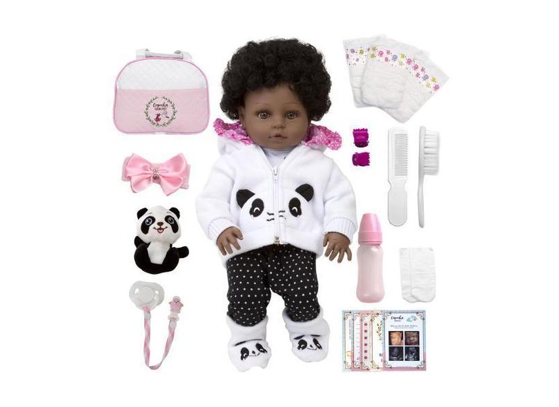 Boneca Tipo Reborn Menina Negra Panda Com Bolsa Acessórios - Cegonha R
