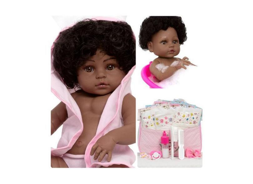 Boneca Tipo Reborn Negra Corpo De Vinil Enxoval Completo - Cegonha Reb