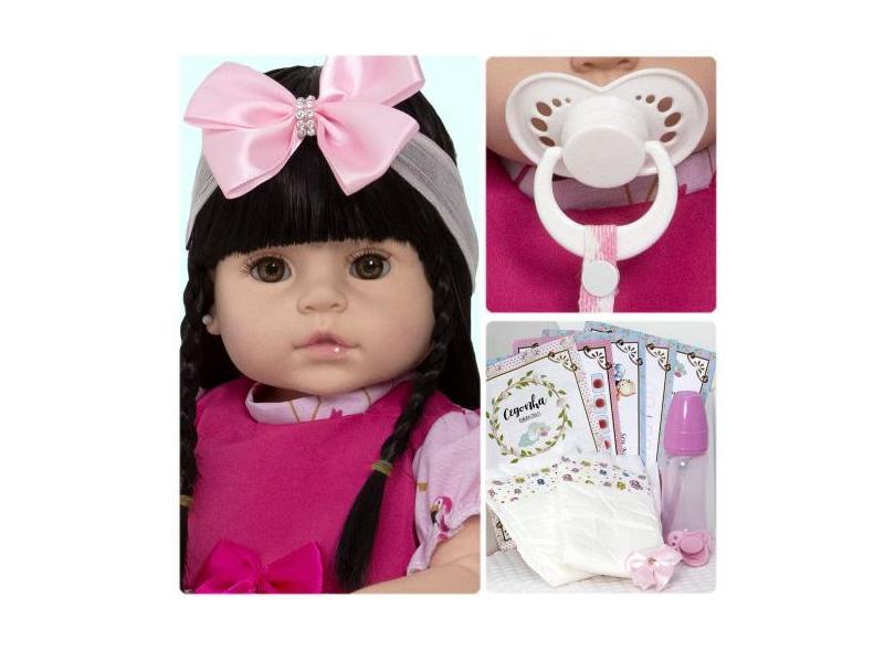 Boneca Tipo Reborn Princesa Morena Fofa Com Enxoval 13 Itens - Cegonha