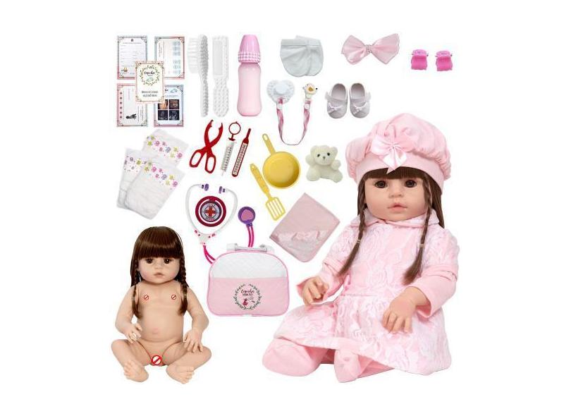 O menor preço encontrado no Brasil para Boneca Tipo Reborn Princesa Vestido Rosa Kit Acessórios Luxo - Cegonha atualmente é R$ 283,71.
