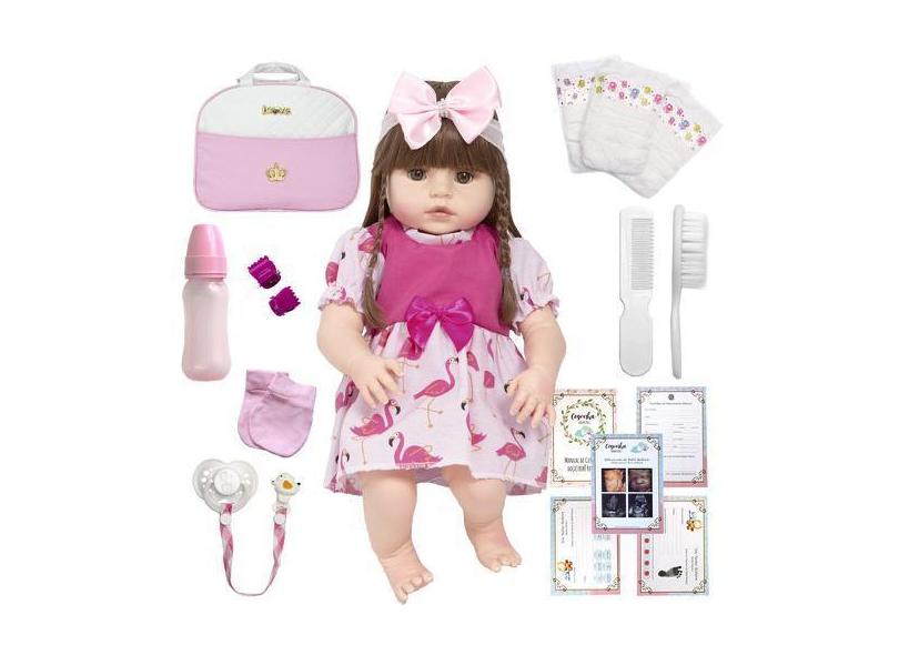 Boneca Tipo Reborn Vestido Rosa Enxoval Completo - Cegonha Reborn Doll