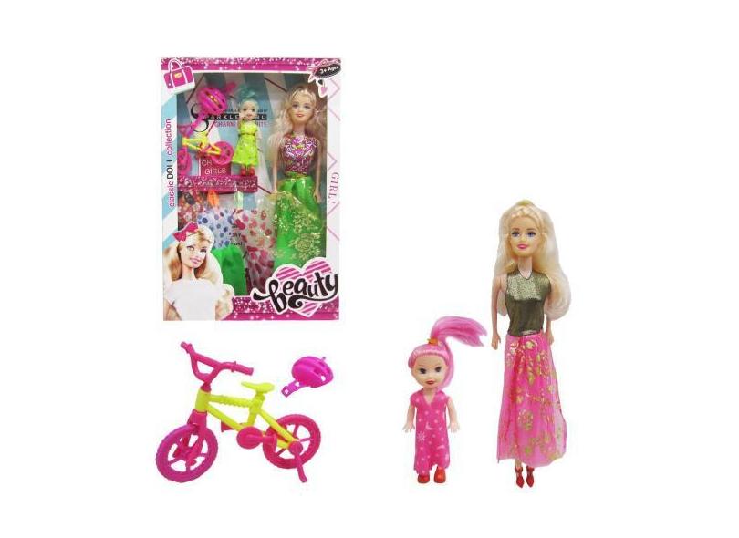 Boneca Troca Roupa Vestido Mae E Filha Com Bicicleta 7 Peças - Altimix