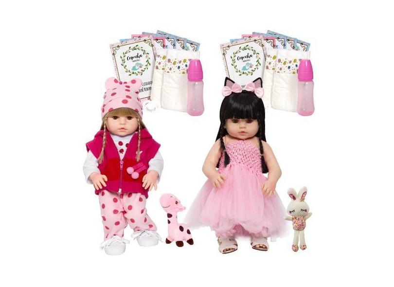 Bonecas Bebê Reborn Gêmeas Cegonha 46cm Vinil Bege - Cegonha Reborn Do