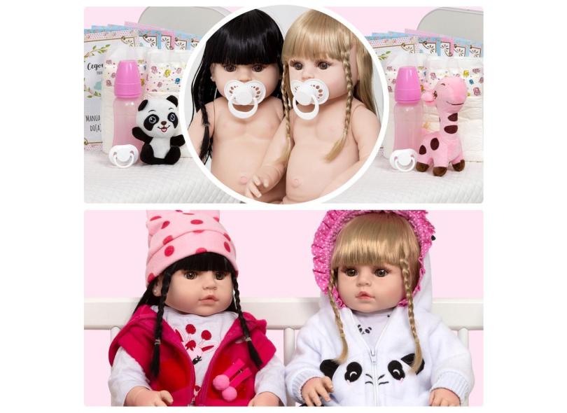 Bonecas Gêmeas Reborn Recém Nascidas Panda Girafa Fofinhas