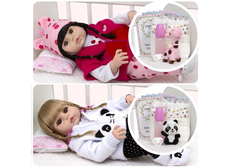 Bonecas Reborn Gêmeas 100% Silicone Girafa Panda Enxoval