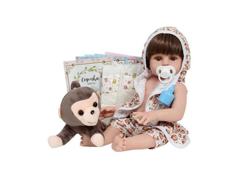 Boneco Bebê Reborn Menino Saída De Banho Macaquinho 12 Itens - Cegonha