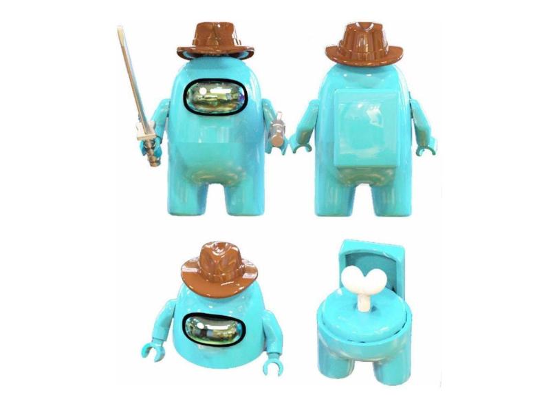Boneco Blocos De Montar Among Of Us Skin Impostor Turquesa