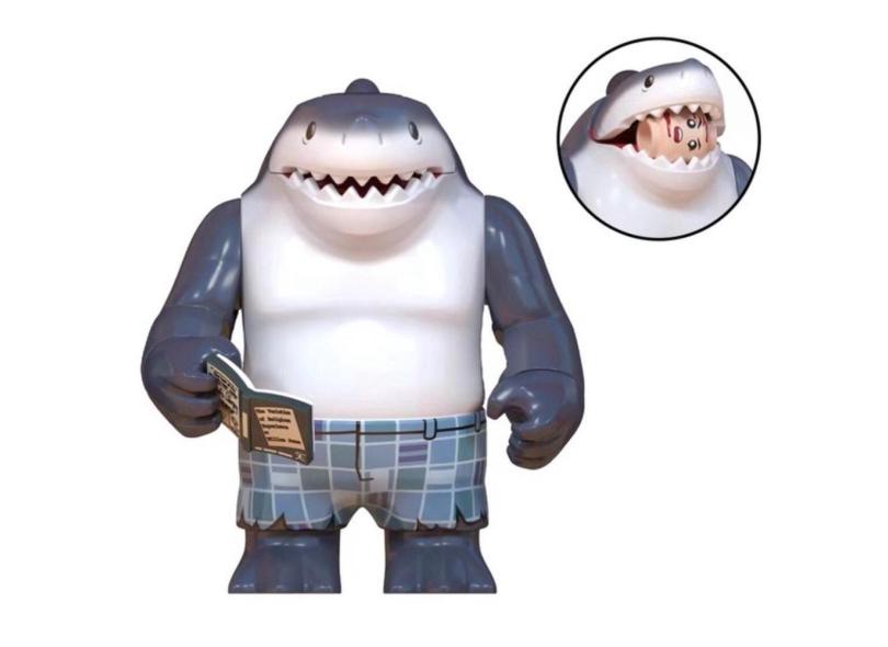 Boneco De Bloco De Montar Tubarão Rei Liso Mastigando Cabeça