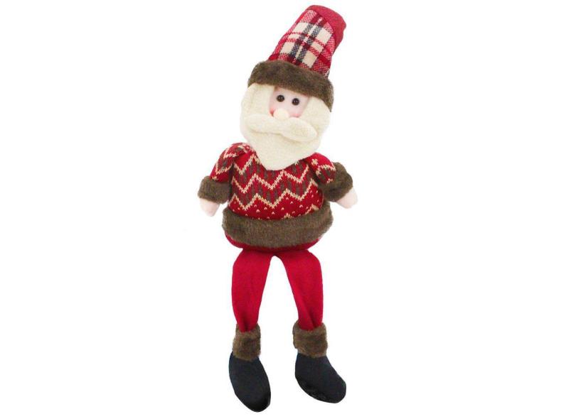 Boneco De Natal Papai Noel Sentado Perna Mole Em Tecido 56cm