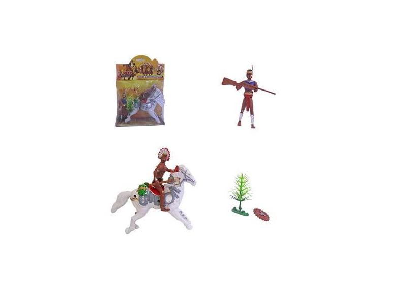 Boneco Índio Guerreiro Com 2 Peças + Cavalo E Acessórios