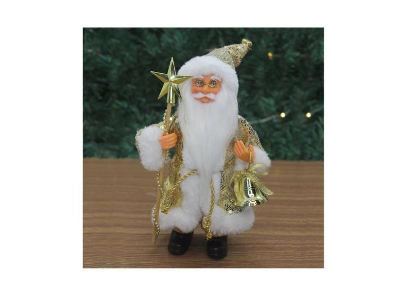 Boneco Natal Papai Noel Com Brilho Dourado Em Tecido 22cm - Gici Chris