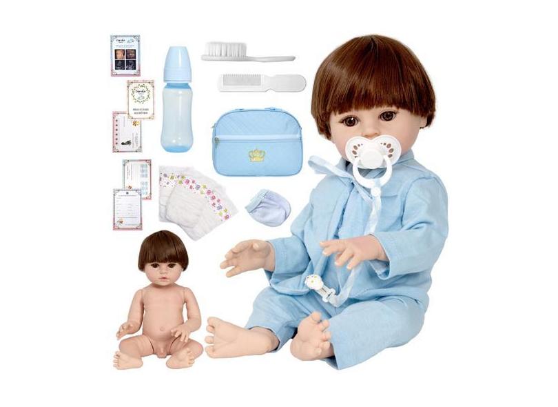 Boneco Reborn Menino Baby Cabelo Castanho Bolsa Maternidade - Cegonha