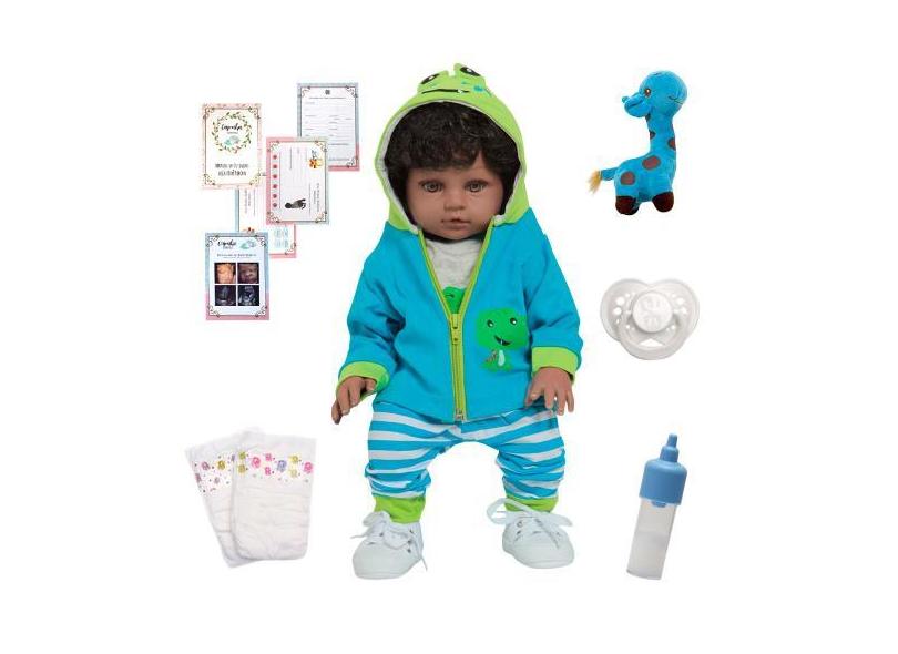 Boneco Reborn Recém Nascido Negro Girafinha Pode Banho - Cegonha Rebor