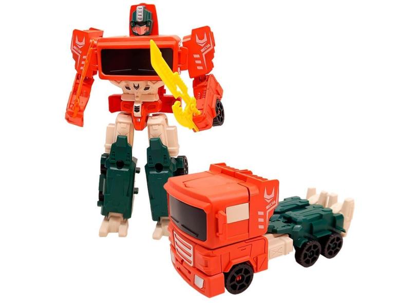 Boneco Robô Transforma em Caminhão 2 em 1 Robot Fighter Bots Laranja e Verde L015-76 - Dorémi