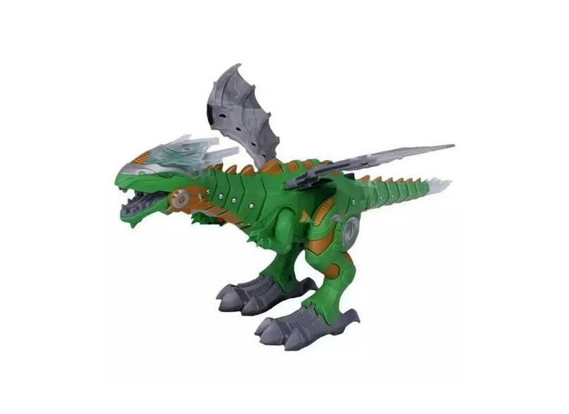Dragão Dinossauro Robô Solta Fumaça Com Som E Luz Cor: Verde - Dm Toys