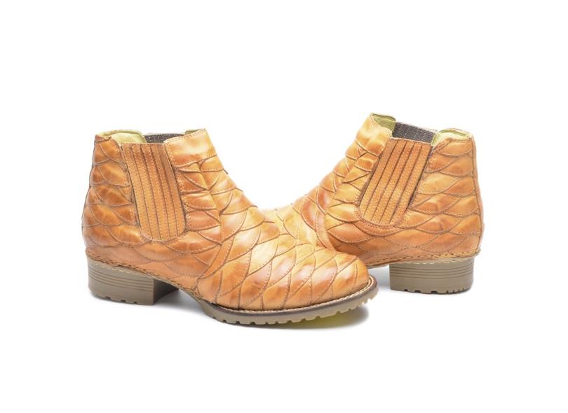 Bota Botina Masculina Couro Cano Curto Elástico Escamada Caramelo