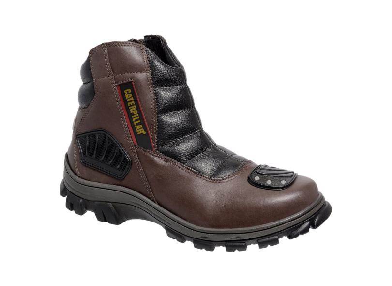 Bota Caterpillar Em Couro Motociclista Masculina Ziper Cat!