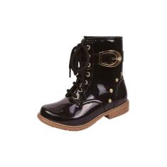Bota Coturno Infantil Menina Cadarço Fivela Verniz