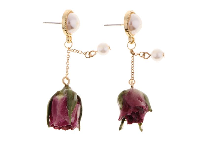 1 Par Natural Real Secado Flor 3D Resina Epóxi Coberto Brincos Jóias