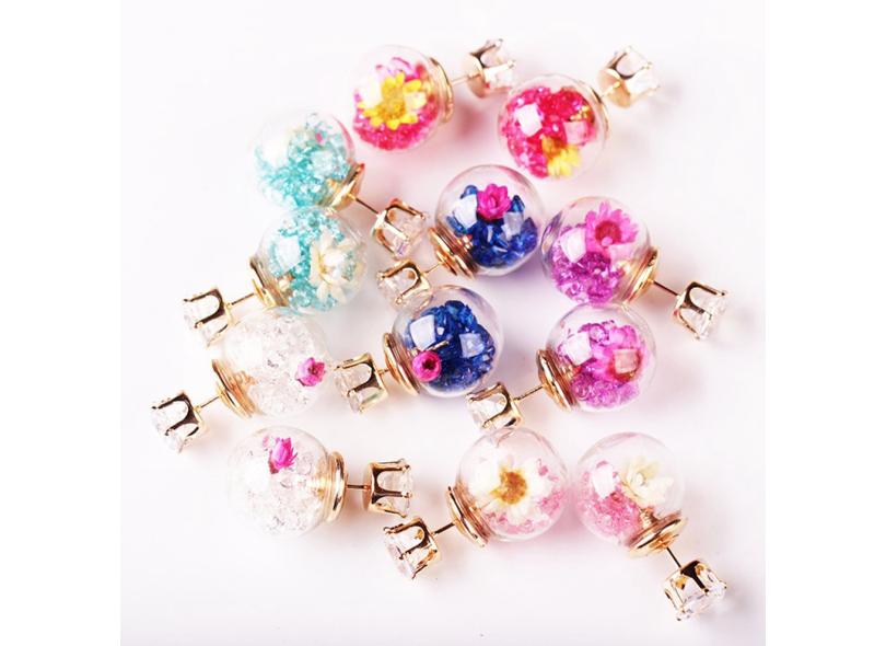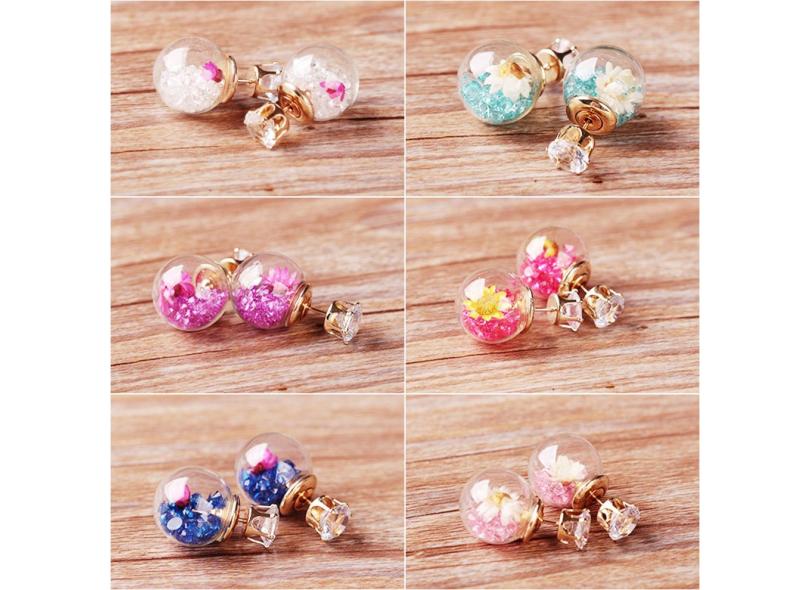 Bola de vidro da flor seca brincos Fashion Trend Brincos Jóias Acessórios