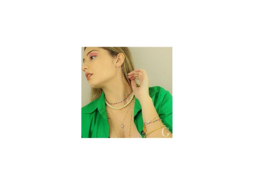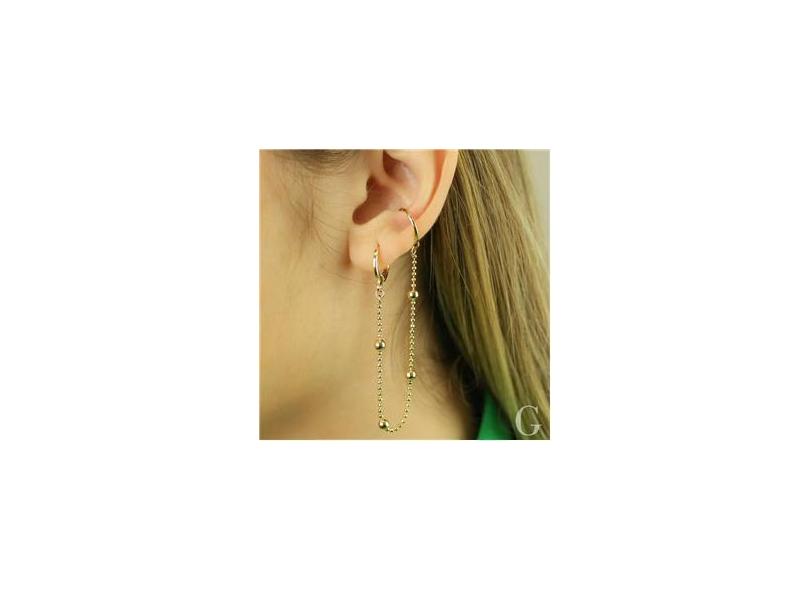 Brinco Argola Corrente Bolinhas com Piercing Banhado Ouro 18K