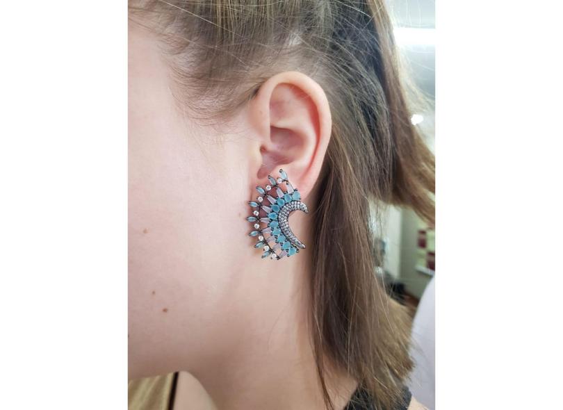Brinco Asa De Zircônias E Navetes Ródio Negro 20
