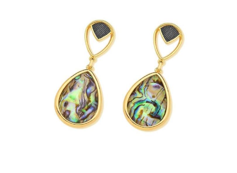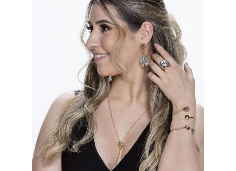 Brinco banho ouro 18k pedra natural abalone e aplique ródio