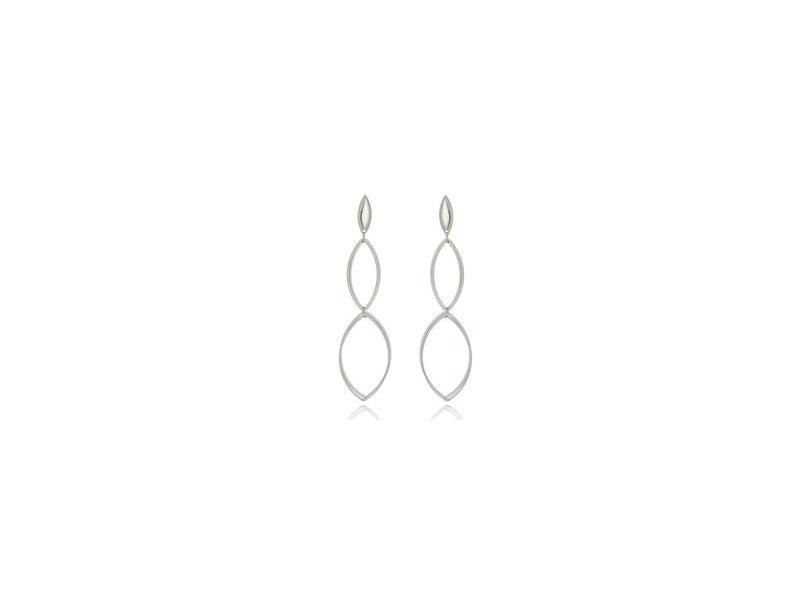 Brinco Com Dois Pendentes Ovais Folheado em Ródio Branco