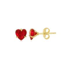 Brinco Coração Vermelho Banhado a Ouro 18k