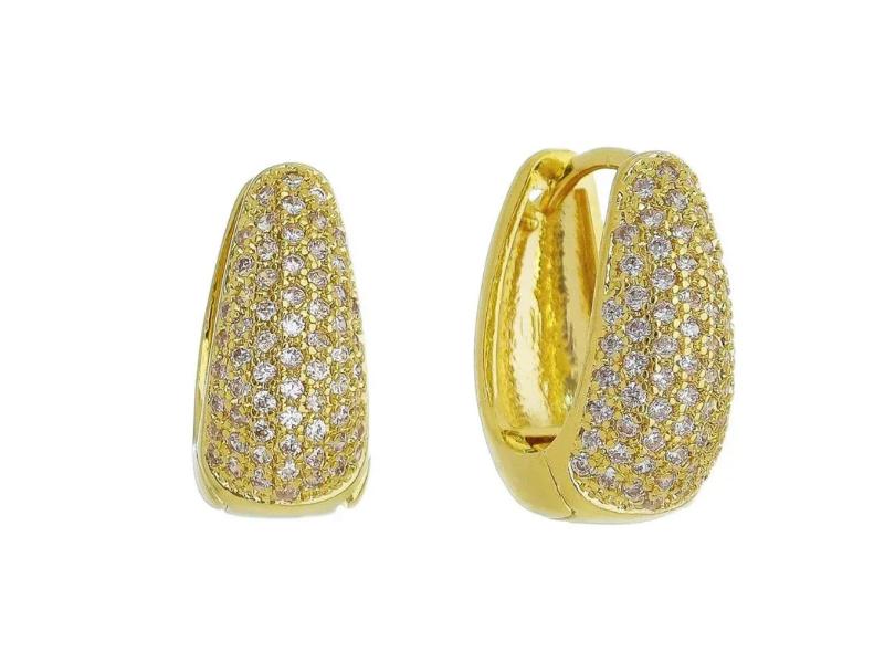 Brinco de Argola com 7 Filas Cravejadas em Zircônia Folheado em Ouro 18k
