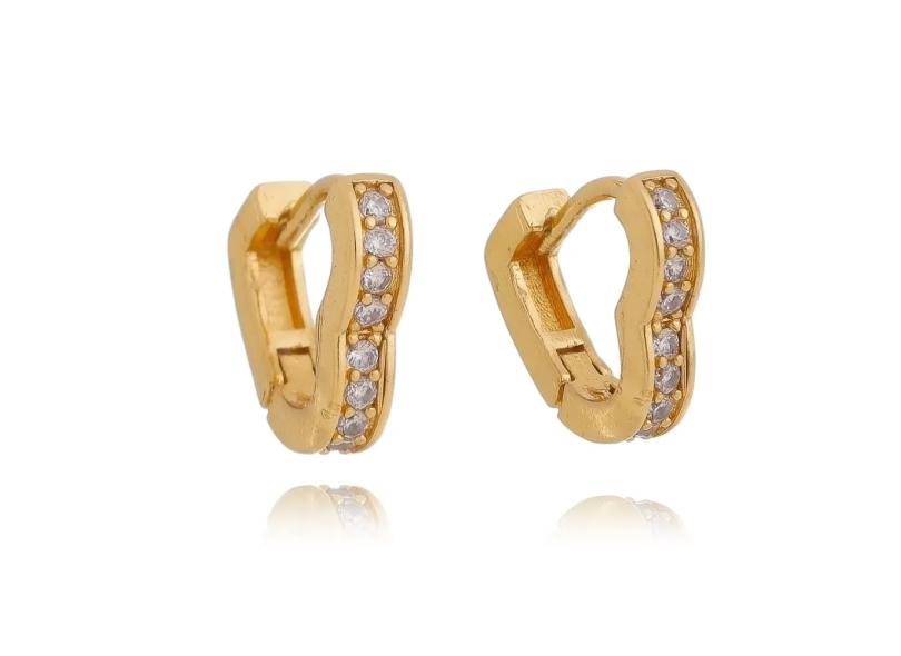 Brinco de Argola Coração com Zircônias P Folheado em Ouro 18k