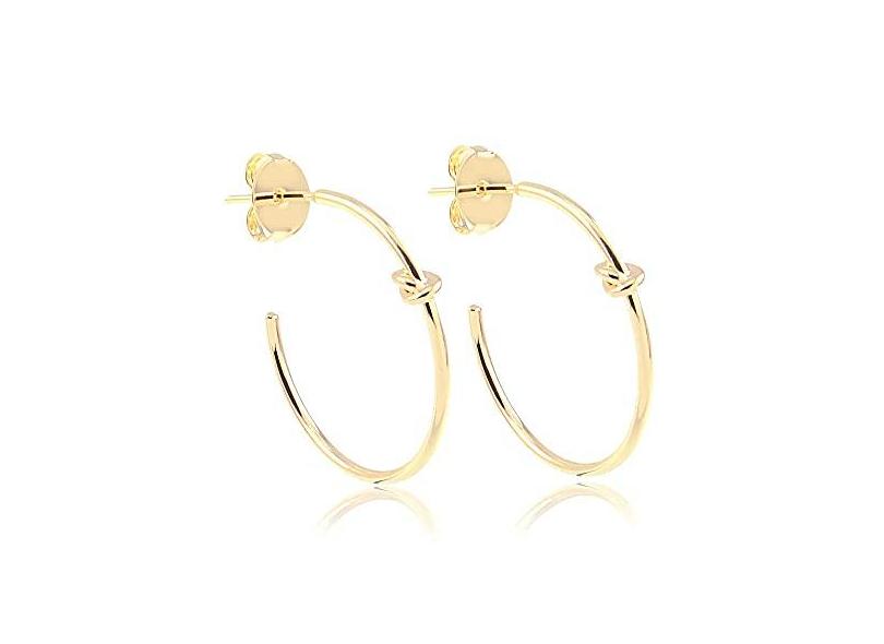 Brinco de argola média com design de nó folheado em ouro 18k