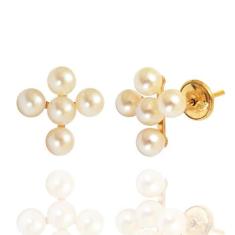 Brinco de Cruz Ouro 18k Com Pérolas Naturais