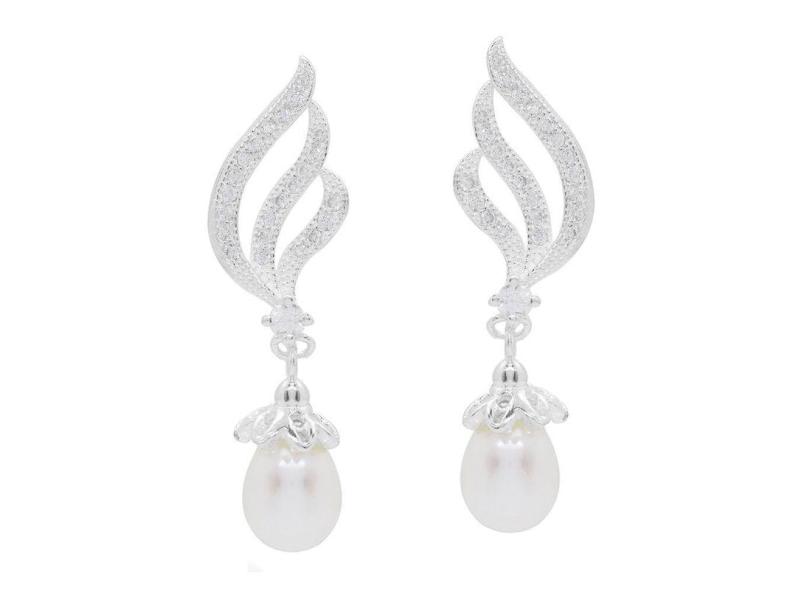Brinco De Prata 925 Cravejada Com Zircônias E Pérola Natural