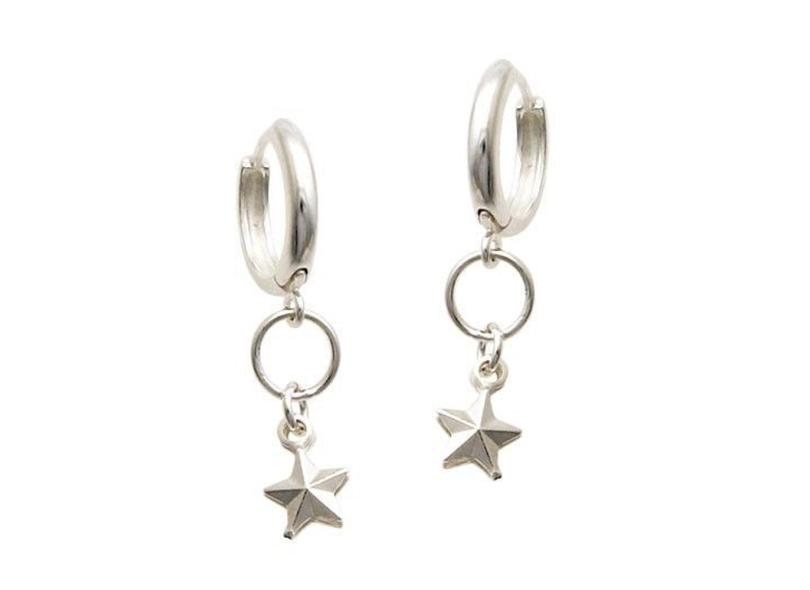 Brinco De Prata Argolinha Com Estrela Dupla Diamantada