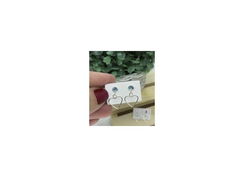 Brinco de Prata coração vazado com zircônia azul