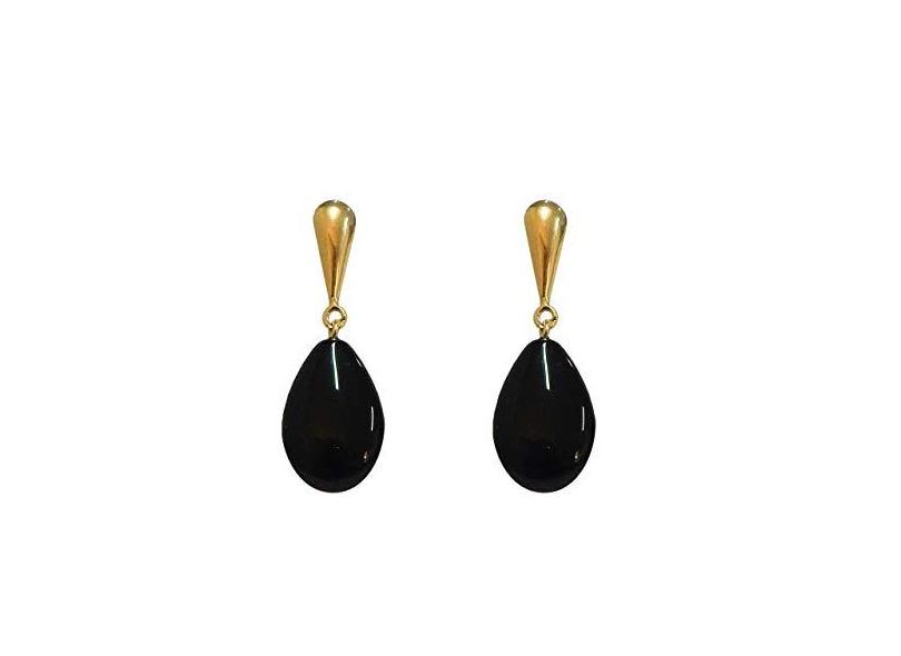 Brinco Em Ouro 18k Pedra Natural Preta Ônix