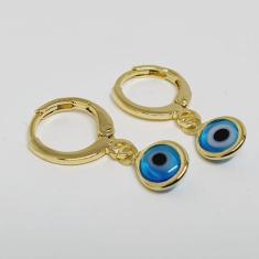 Brinco Fecho Click Argolinha Folheado A Ouro 18K Olho Grego