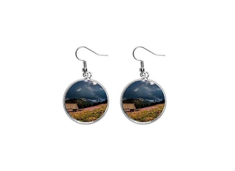 Brinco feminino com pingente de prata e estampa florestal ciência natureza
