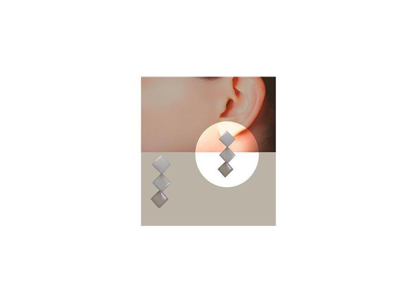 Brinco Grande Losango Resina Branca Semi Joia Banhado a Ouro