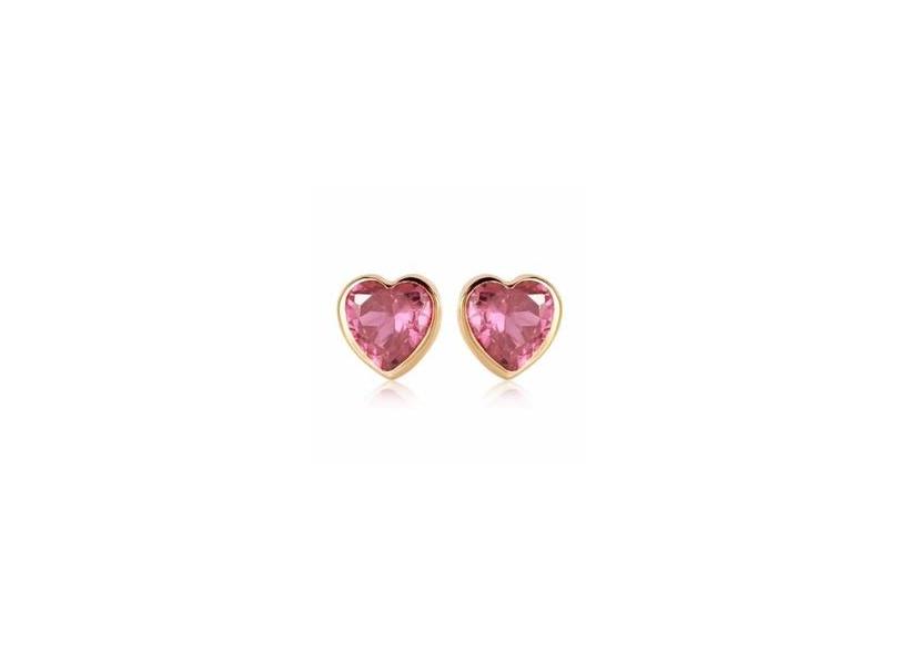 Brinco Infantil Zircônia 5mm Coração Ouro 18k + Caixinha