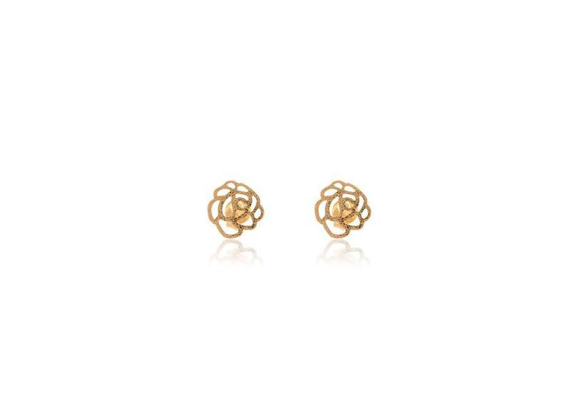 Brinco Pequeno de Rosa Vazada Folheado em Ouro 18k