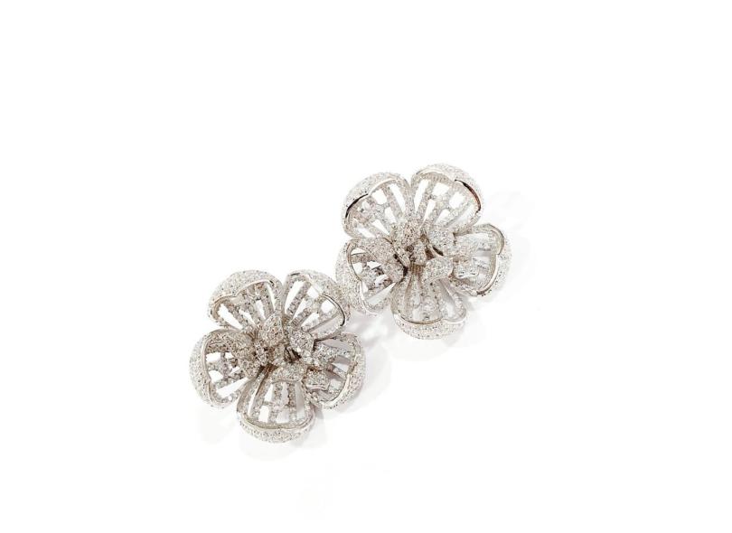 Brinco Prata Ródio Formato Flor Com Zirconias