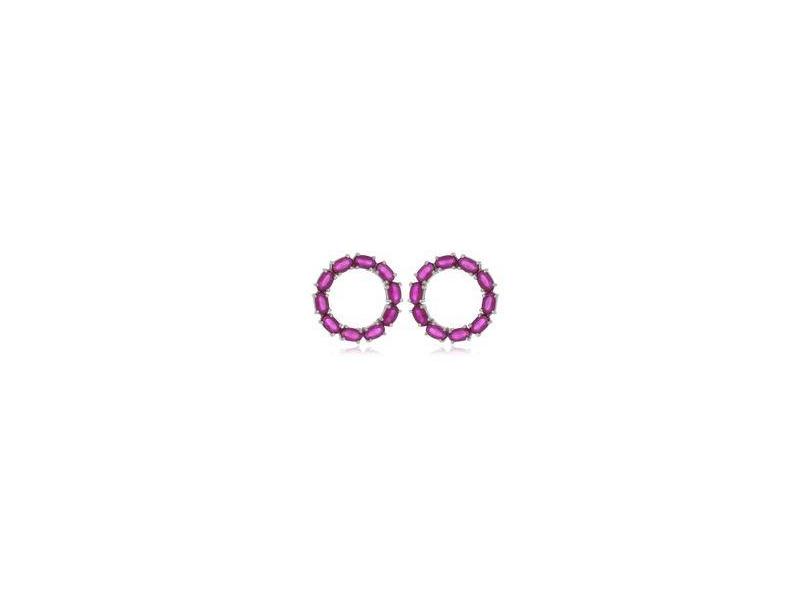 Brinco Prata Round Zircônia Rubi