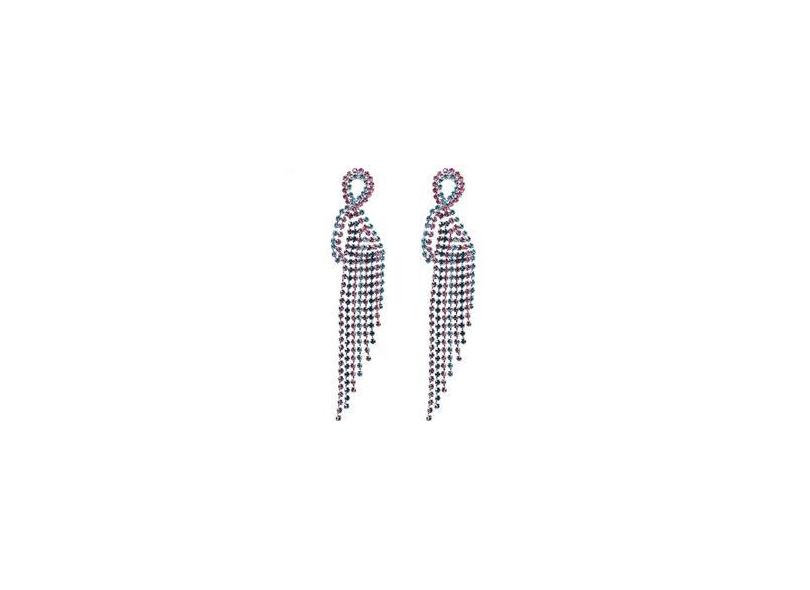 Brinco prateado com strass colorido magnes