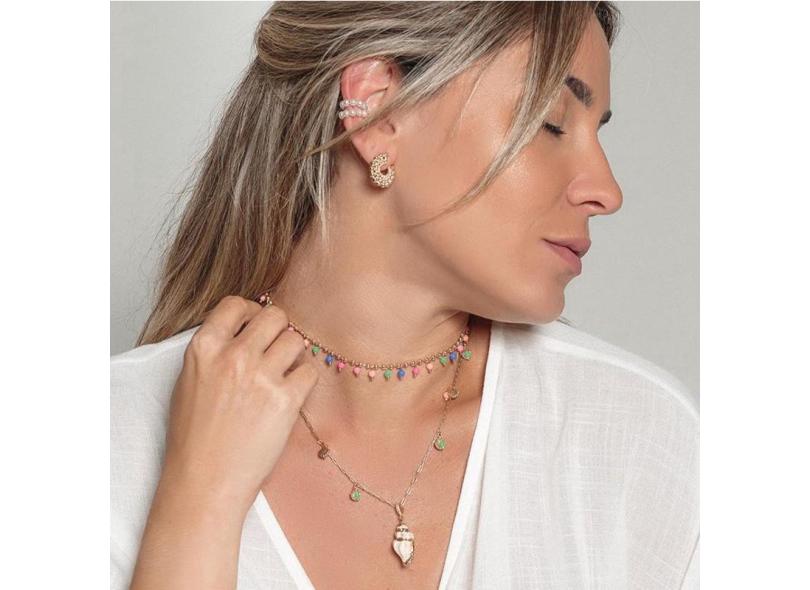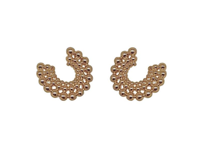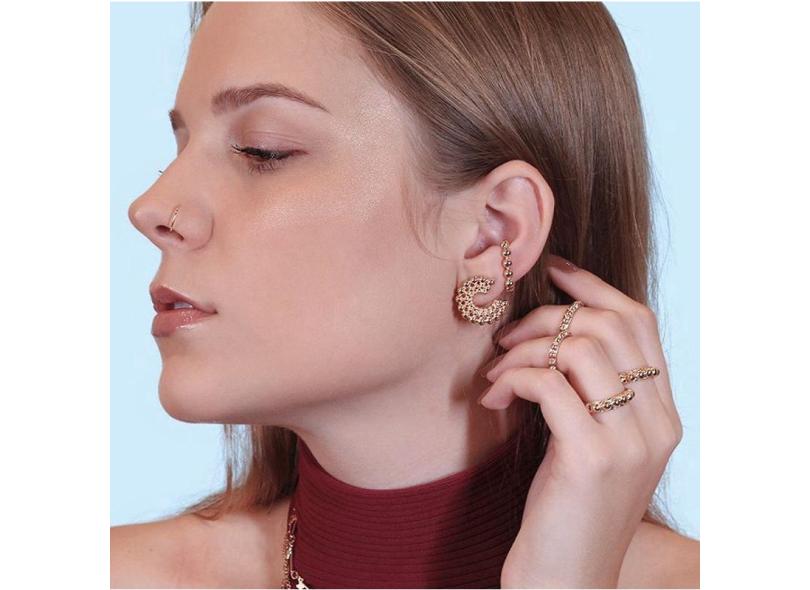 Brinco Redondo Liso Com Bolinhas Folheado Em Ouro